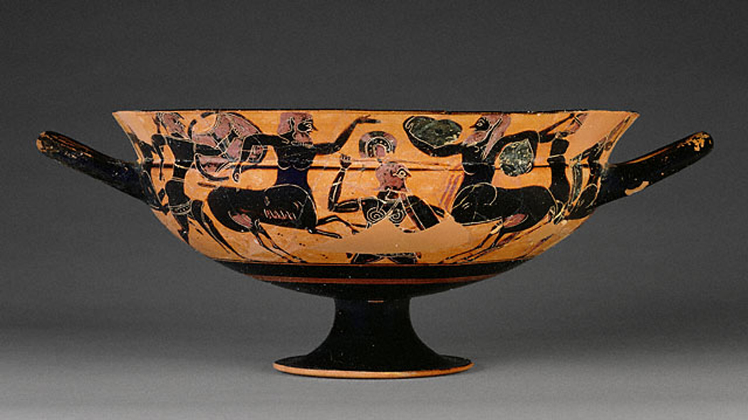 Denne scene ses ofte afbilledet på vaser og tempelfriser fra 400 til 600 år før vor tidsregning.